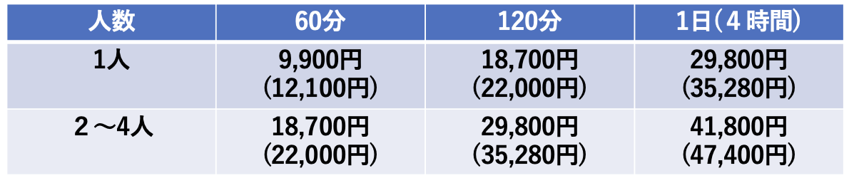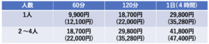 ◆プライベート・グループレッスン料金表